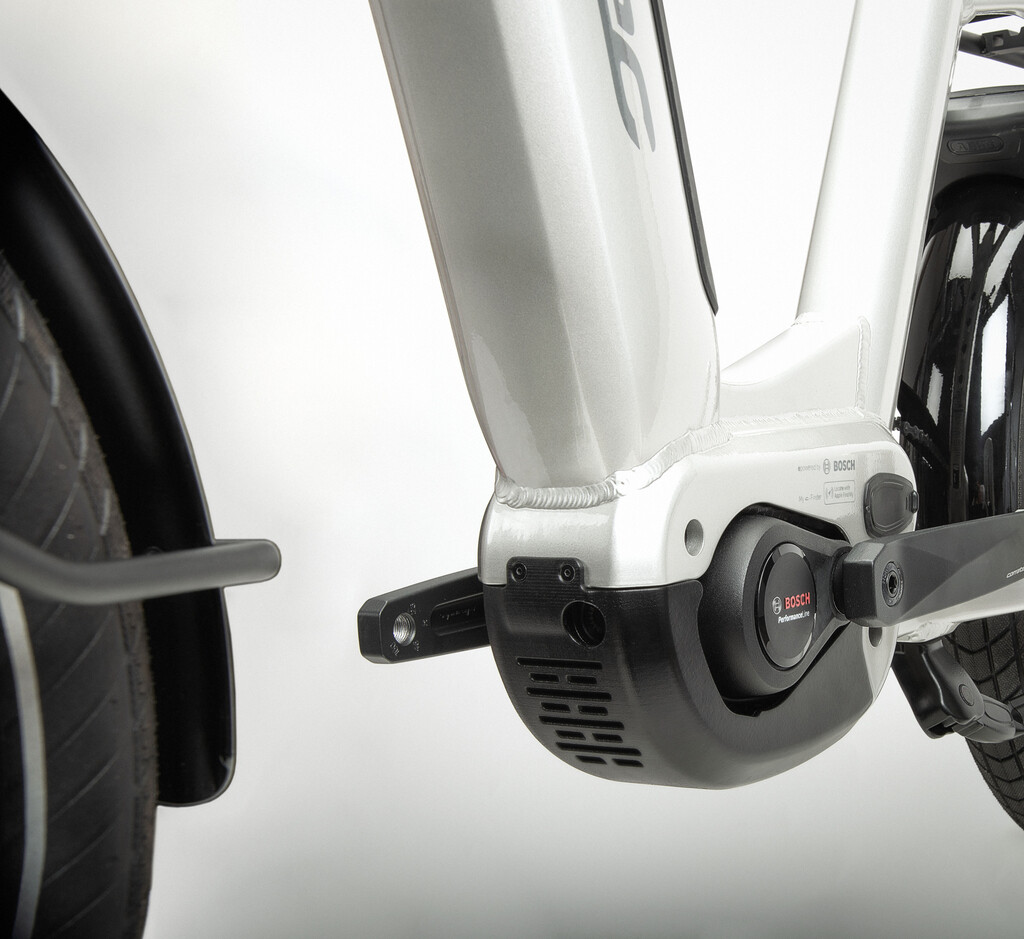 Das Herzstück des Fahrrads ist der zuverlässige Bosch Performance Line Motor mit 75Nm, der Sie beim Anfahren und bei längeren Anstiegen sanft unterstützt. Er wird von einem integrierten 600-Wh-Akku angetrieben, der sich für den täglichen Pendlerverkehr und längere Strecken eignet, ohne dass er häufig aufgeladen werden muss. Das übersichtliche Display des Bosch Purion 200 sorgt für Kontrolle.