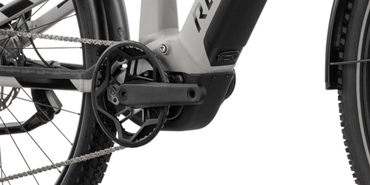 Es basiert auf einem Alloy 6061 Aluminiumrahmen für 29" Laufräder mit moderner Geometrie, 120 mm Federweg und einem integrierten, leicht abnehmbaren Akku. Für die Federung sorgen eine SR Suntour XCR34X Boost Luftgabel mit 120 mm Federweg und ein SR Suntour Raidon R Federbein, die zusammen für mehr Komfort und Kontrolle auf zerfurchten Straßen sorgen.