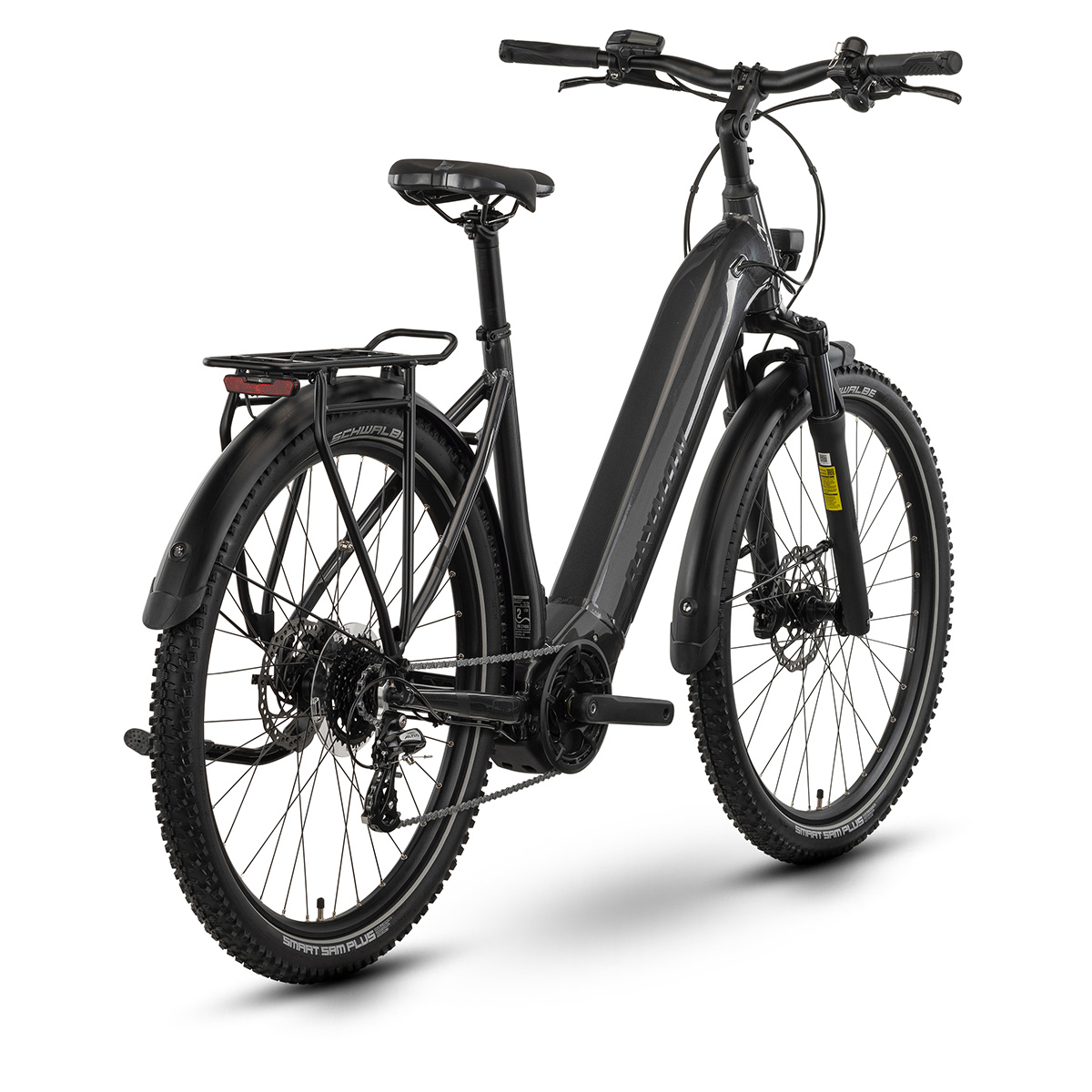 Für sicheres Bremsen sorgen die hydraulischen Tektro Vela Scheibenbremsen mit 180 mm Scheiben vorne und 160 mm hinten. Die bewährte Shimano Altus 8-Gang-Kettenschaltung bietet eine einfache Bedienung und zuverlässige Leistung im täglichen Gebrauch. Zur Vollausstattung gehören ein 25 kg schwerer MIK-Gepäckträger, Schutzbleche, ein Ständer und eine AXA Qualitätsbeleuchtung.