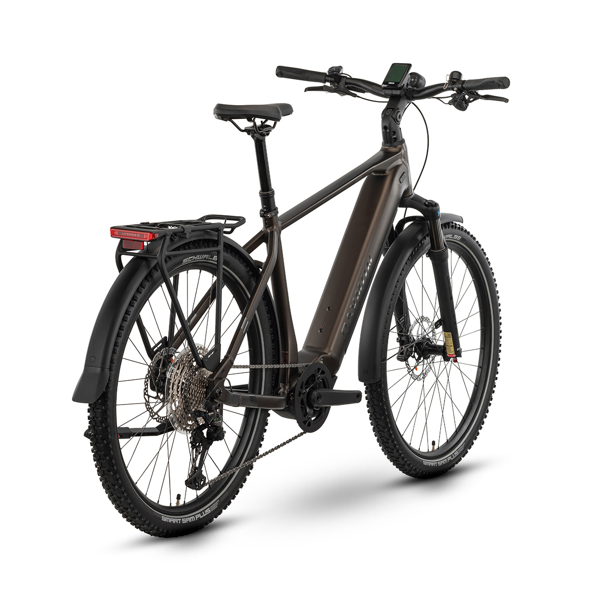 Der Alloy 6061 Aluminiumrahmen ist mit 27,5" Laufrädern mit Schwalbe Advancer Hybrid Reifen ausgestattet, die Vertrauen auf Asphalt mit guter Traktion auf Schotter kombinieren. Für Komfort sorgt die SR Suntour MOBIE34 Boost Luftgabel mit 80 mm Federweg, die Unebenheiten effektiv ausfiltert und die Kontrolle über das Rad erhöht.
