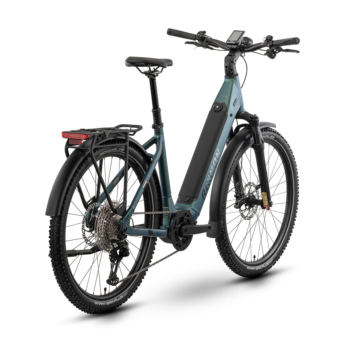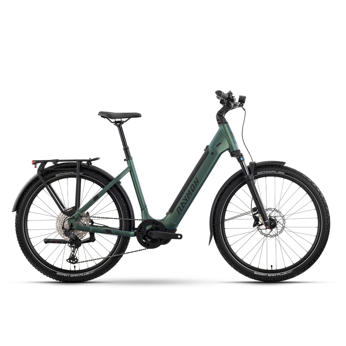 Das Raymon Tourray Ultra ist ein Premium-Trekking-E-Bike, das für den täglichen Pendlerverkehr, längere Touren und wendige Fahrten außerhalb der Stadt konzipiert wurde. Dank seines modernen Rahmens bietet es eine sportliche Sitzposition, hohe Stabilität und Vertrauen auch bei höherer Belastung, während die Gesamtkonstruktion ein maximales Gewicht von bis zu 150 kg zulässt.